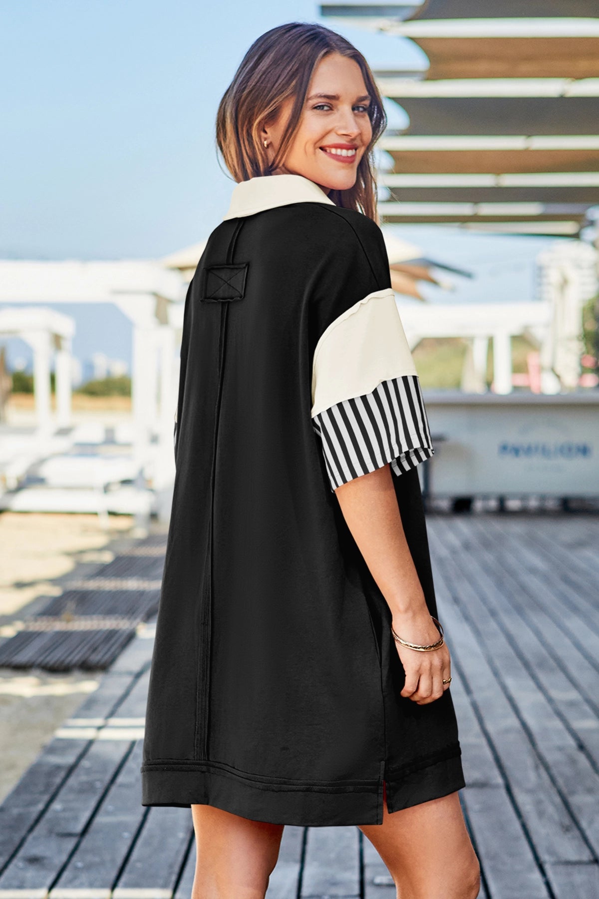 Wenrine Women's Black Color Block Polo Sweatshirt Dress